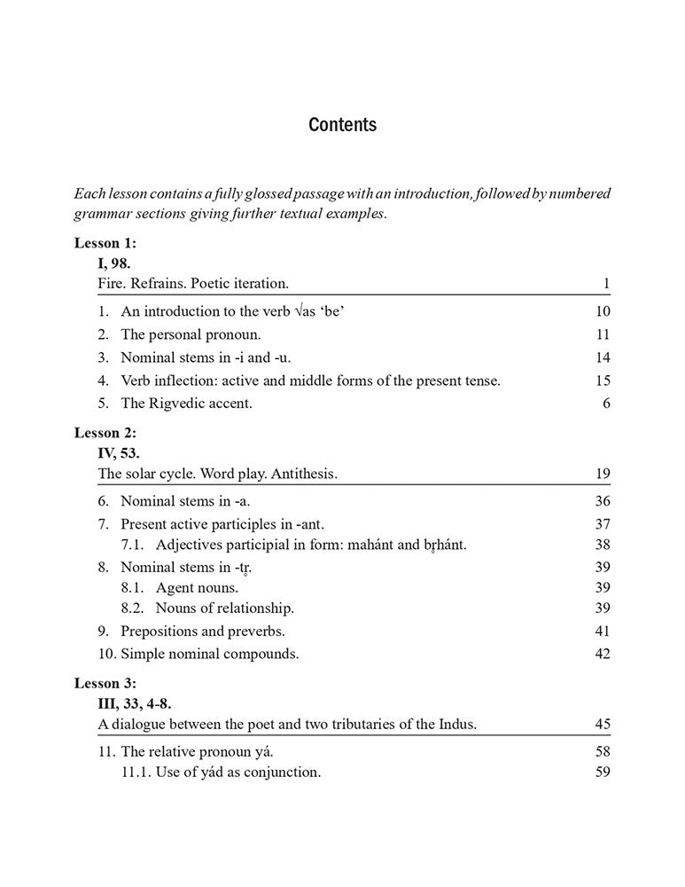 This course on Rigvedic Sanskrit, a dialect that is "clearly not the direct ancestor of Classical Sanskrit" (Emeneau), provides a complete introduction to the language of the poems, and is designed to encourage renewed and independent study of this important anthology. Each lesson contains a fully-glossed passage, followed by grammar sections giving examples from throughout the poems. No prior knowledge of later Sanskrit is necessary.