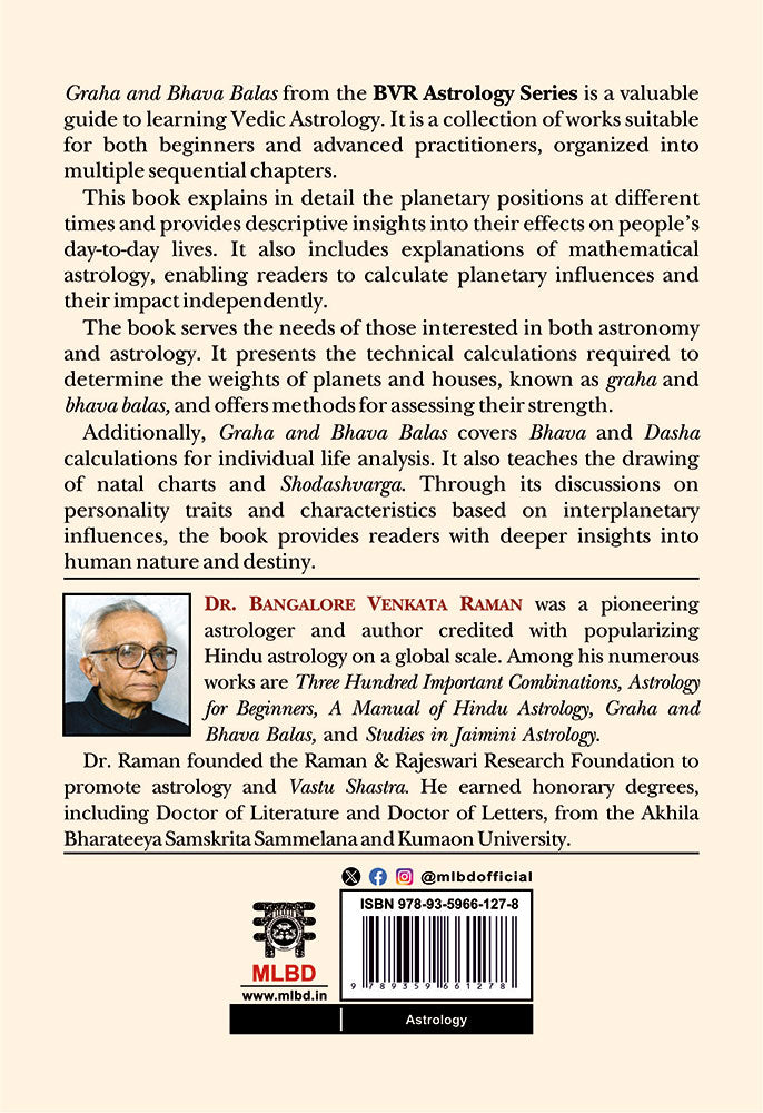 Graha and Bhava Balas from the BVR Astrology Series is a valuable guide to learning Vedic Astrology. It is a collection of works suitable for both beginners and advanced practitioners, organized into multiple sequential chapters.
