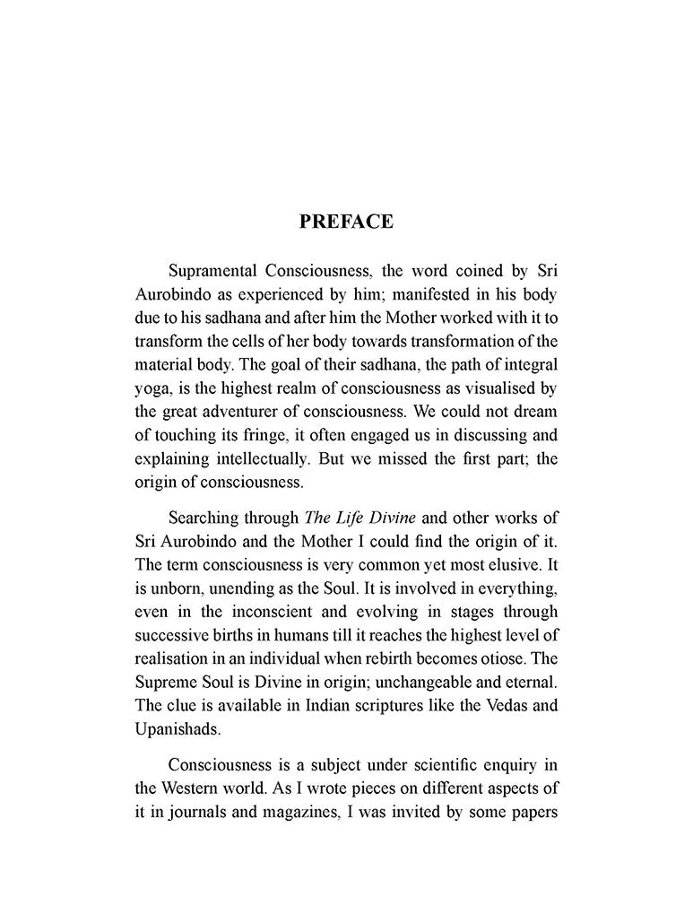 Consciousness is neither born nor does it die. It is involved in the whole universe-existing in every atom, in every cell of the body, from the inconscient to the conscient, from the smallest particle to the supreme. Every being evolves with each birth. The evolution of consciousness is the true form of evolution-a continuous process.
